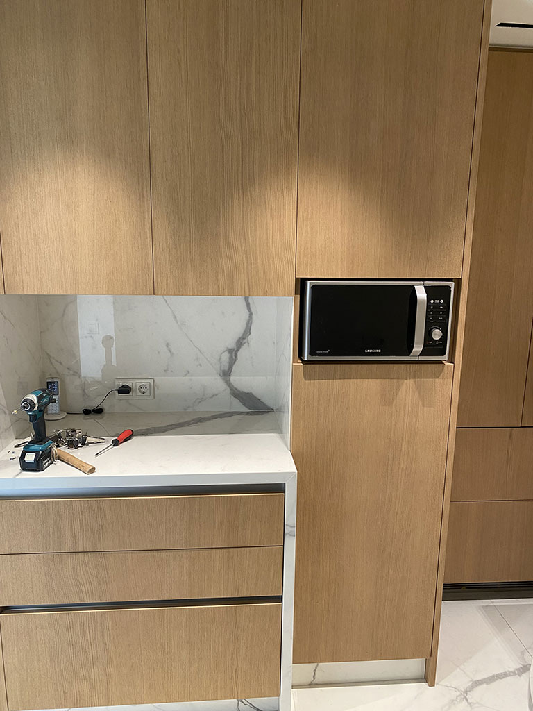 Η τοποθέτηση της κουζίνας γίνεται αποκλειστικά από το έμπειρο προσωπικό της εταιρείας μας, πλήρως εξοπλισμένο με τα κατάλληλα εργαλεία. Έτσι διασφαλίζουμε ότι κάθε στοιχείο τοποθετείται με ακρίβεια, ασφάλεια και άψογο φινίρισμα.